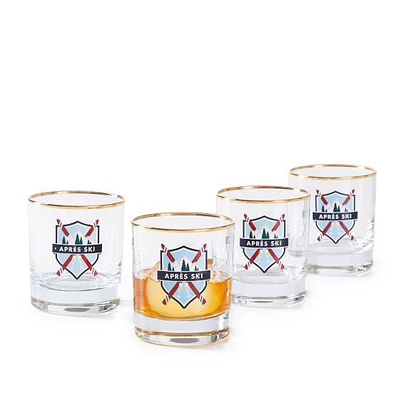 Take your après ski drinks to the next level with these rocks glasses featuring a design inspired by peak Alpine style. Perfect for serving your favorite winter cocktail, the glasses have a gold rim for a touch of elegance. Add a monogram for a one-of-a-kind flair.