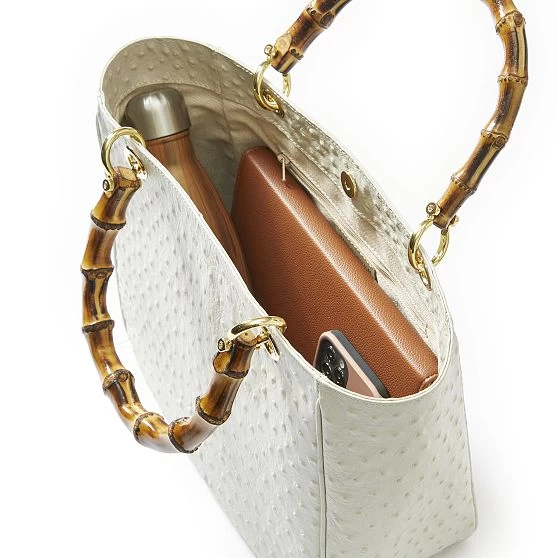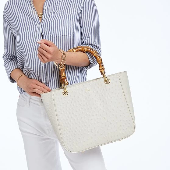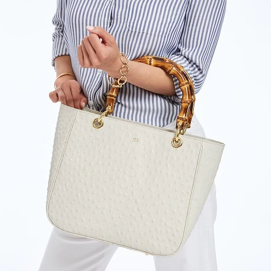 Introducing the latest addition to our bestselling Elisabetta collection. Expertly crafted in Italy from a choice of leather textures, this stylish tote has room for your everyday essentials plus a little more. You’ll appreciate the structured silhouette and the elevated appeal of the bamboo handles and gold toned hardware. Features a snap closure and a linen lining with convenient pockets. Add a foil debossed monogram for a bespoke touch.