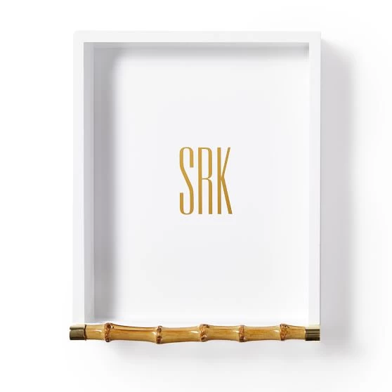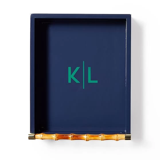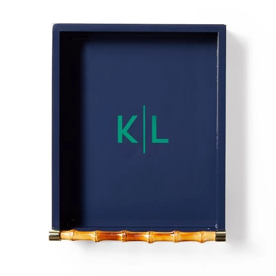A stylish way to keep your space organized. This lacquer desk organizer tray is the perfect place to store documents and other loose ends. Crafted from high-gloss lacquered wood with bamboo handle, this tray adds a decorative accent to any surface. Pair with our bamboo desk file organizer and add a custom monogram to really make a statement in your workspace.
