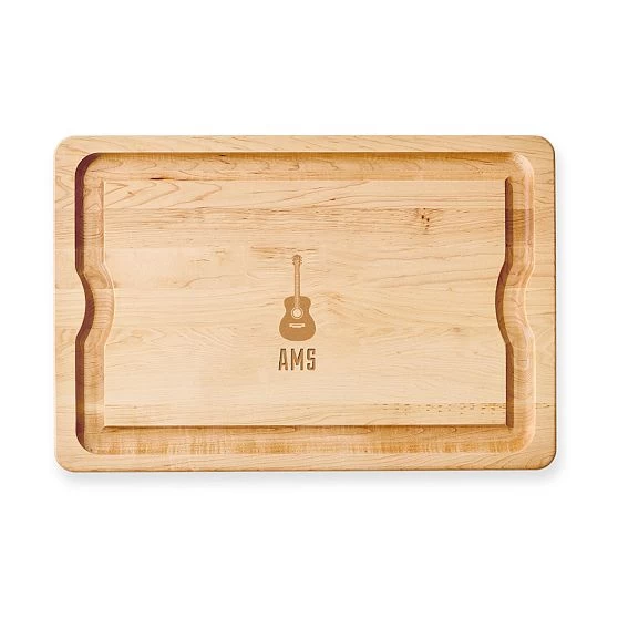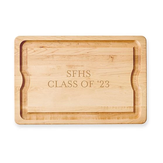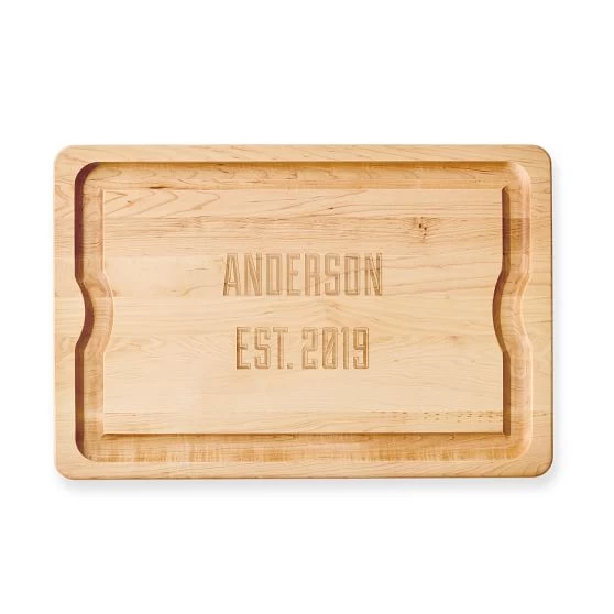 The perfect gift for anyone who loves to grill! Handcrafted in Vermont from sustainably grown and harvested maple wood, each carving board is hand sanded and finished with care. The extra-large carving board features grooves to catch runoff juices and two undercut handles that allow you to easily carry the board from the grill to the kitchen. Engrave a name, date or special message to make this gorgeous carving board a truly unique gift that would be perfect for a house warming, birthday or Father’s Day. Because the cutting board is made from natural wood, the color and grain will vary making each piece unique.