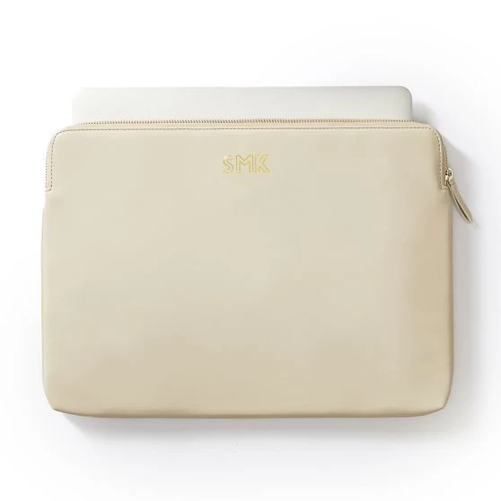 A beautiful way to protect your tech. Part of the covetable Bella collection, this laptop sleeve is lightly padded for protection and crafted from buttery soft faux leather that must be touched to be believed. It feels even better when you know it’s made from recycled materials. Use it on its own to make a stylish impression at any meeting, or pair with the Bella Ruched Tote to create a coordinated set. Add a classic monogram for a one-of-a-kind touch.