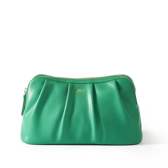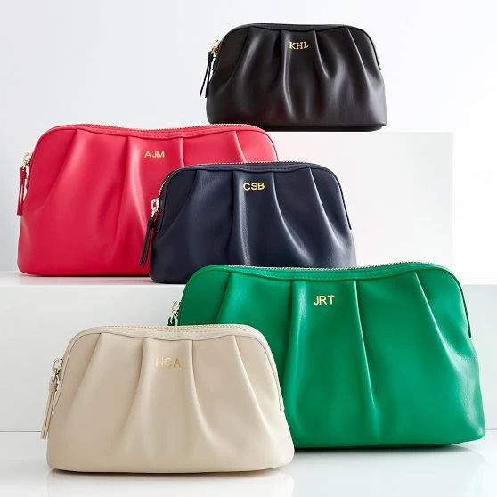 Gently folded into pillowy perfection, this pouch has a purpose beyond just looking good. Use it as at travel case for cosmetics, toss it in your tote for extra organization, or tuck it under your arm as a stylish clutch. Available in an inspirational range of colors, the Bella collection is crafted from buttery soft vegan leather that must be touched to be believed and feels even better when you know it’s made from recycled materials. Add a monogram for a personal touch on the design.