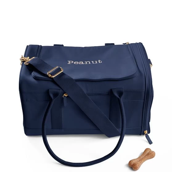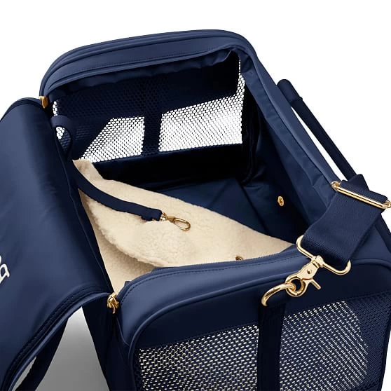 The Buddy Pet Carrier is the perfect way to keep your pet secure and comfortable while you travel. Conveniently sized as an airplane carry-on bag, the carrier is built to hold up to 40 pounds and complies with TSA guidelines to fit under the seat in front of you. Made from durable nylon, the bag features net sides for plenty of ventilation and one side that can be rolled down to keep your pet cool. The removeable fleece lining will keep your pet cozy and comfortable, while the built-in leash is designed to keep them safely secured. With two carry handles and an adjustable shoulder strap, the Buddy Pet Carrier is super easy to transport so you can take your pet with you wherever you go! Add their name to the top in embroidery for a personal touch.