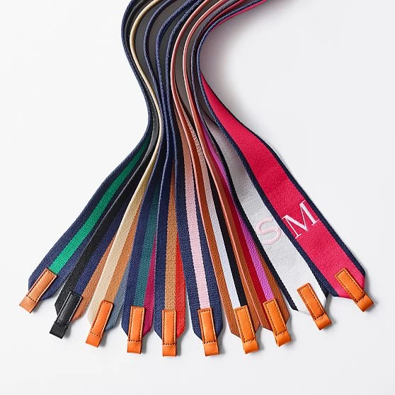 It has never been easier to mix, match and create your own style with our custom bag straps. Made from woven twill with an adjustable design, our monogrammed crossbody straps are the perfect way to give your favorite tote a simple refresh or to add a custom look to a new crossbody.