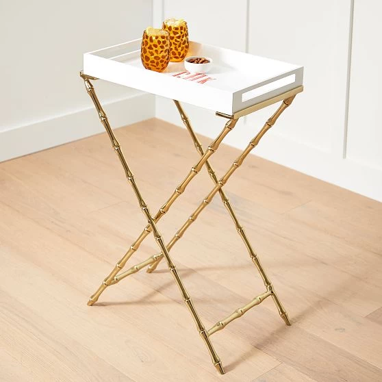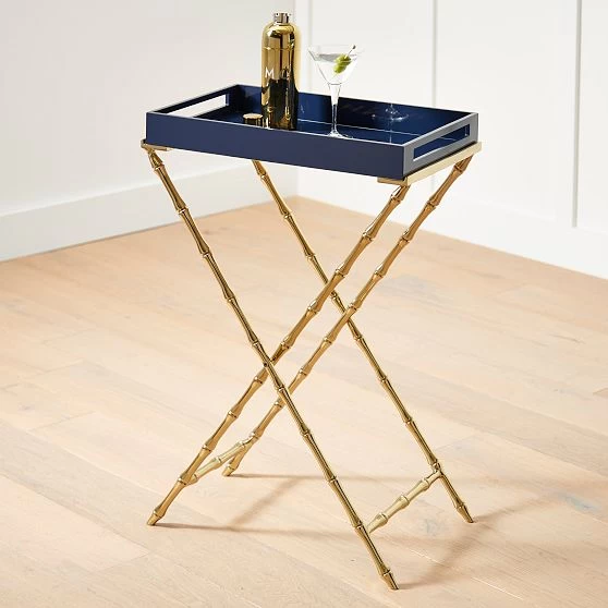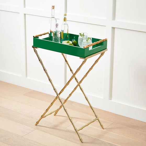 This versatile butler stand makes the perfect bar or appetizer station for cocktail parties and beyond. The gold bamboo legs are designed to fold for easy transport so you can seamlessly move the party from inside to out or store when it’s not in use.