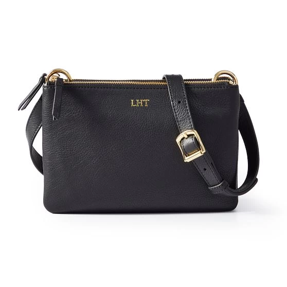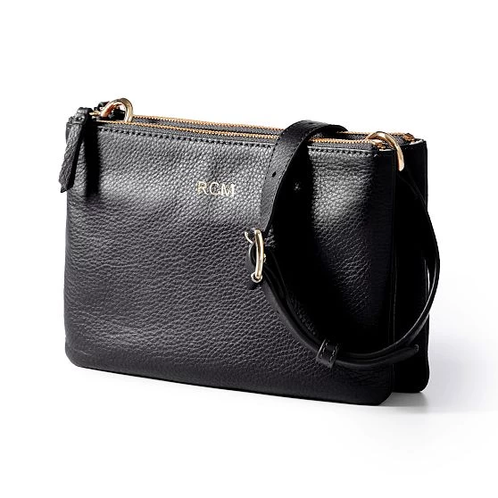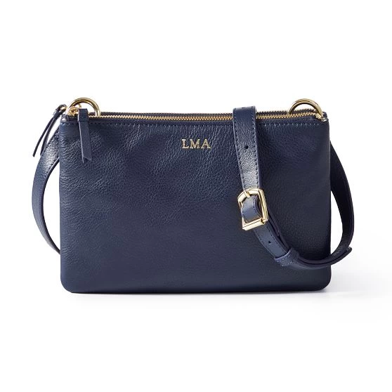 The Build Your Double Zip Crossbody is crafted from a beautiful pebbled leather that comes in a range of colors accented with gold-toned hardware.