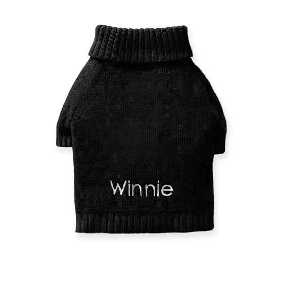 Keep your pup warm with this cozy knit sweater. These super soft sweaters are available in extra small to large sizes and feature a small opening in the back so you can easily access your dog’s collar when you are headed out for a walk. Have your pup’s name embroidered on the sweater for a personal touch.