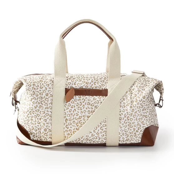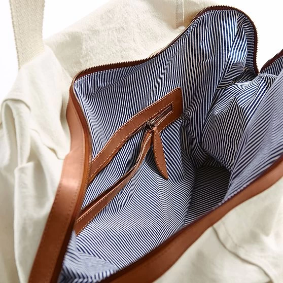 Destined to become your most-used weekender, this best selling travel bag is a Mark & Graham classic. Crafted from soft, durable cotton canvas with warm leather accents, this timeless weekender features a spacious interior with a striped cotton lining, an outside pocket for easy access to small essentials, an adjustable crossbody strap and comfortable carry handles. Add a custom monogram to make it yours.
