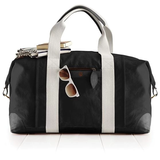 The Canvas and Leather Weekender is our go-to getaway bag with a spacious interior with a large zipper pocket, carry handles and a removable, adjustable shoulder strap, and an outside pocket for your phone, passport or keys.
