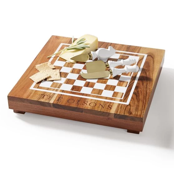 The ultimate gift for the chess lover. Serve charcuterie, appetizers and more on this gorgeous wooden board alongside the classic chessmen cheese knives. Add a custom monogram for a personal touch.