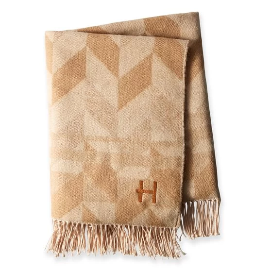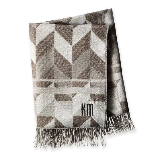 Woven from a super soft, cashmere-like acrylic, this beautiful throw blanket has a “please touch” texture that was made for lounging. Woven with a beautiful chevron design and finished with a tassel fringe and embroidered monogram, drape this luxe throw over your sofa as an invitation to lounge or wrap it up as an easy gift anyone would love.