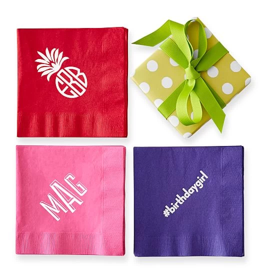 These paper cocktail napkins are great for patio parties, top-tier tailgating, al fresco fetes or wilderness weddings. The foil-stamped personalization can be coordinated with our plastic cups, paper coasters and other paper linens, for coolly coordinated entertaining.