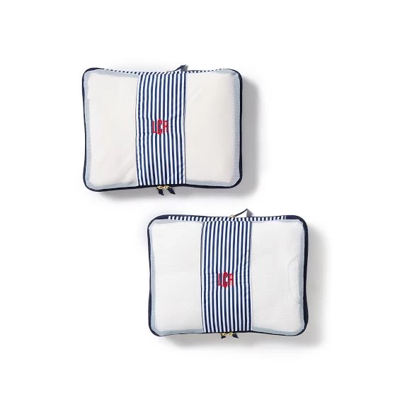 The perfect solution when you want to fit just a little more into your vacation, these compression packing cubes are designed to with a zipper gusset that squeezes down the contents into a more manageable volume. Ideal for packing plush items such as knits into a smaller space. Makes a great addition to our other packing cube sets, so you can mix and match based on your organizational needs. Add a classic monogram for a personal touch.