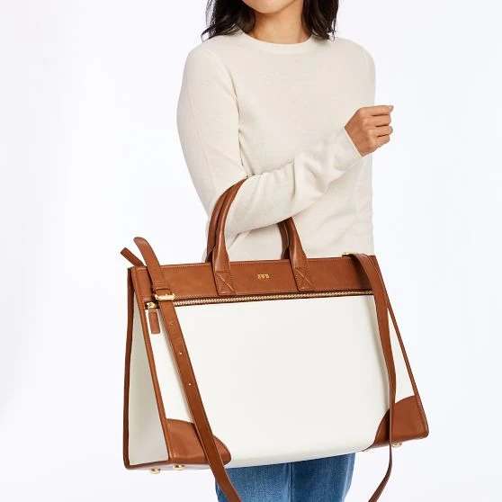 Designed with the business traveler in mind, stylish enough for overnights that include some leisure time. Made from lightweight vegan leather that will withstand the demands of a jetsetting lifestyle, this distinguished and cleverly designed bag features handles and a buckled, adjustable shoulder strap; zipper closure, handy extra pockets, nylon lining and a foil-debossed monogram to make it yours.