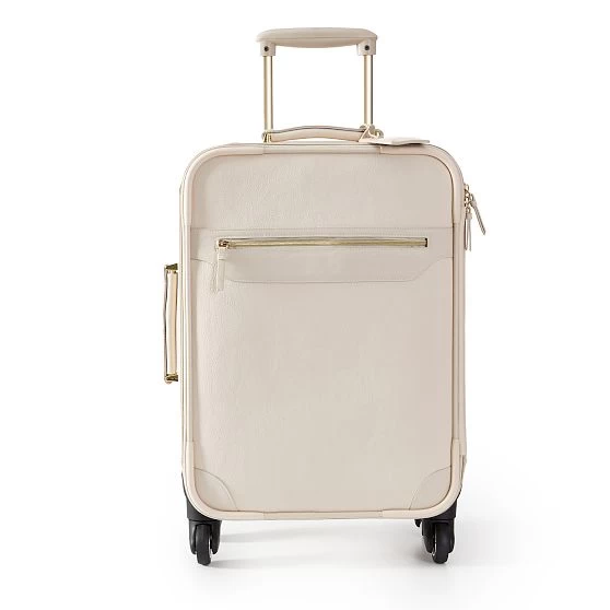 Crafted from soft vegan leather that is lightweight, durable and easy to clean, our new carry-on luggage is perfect for staycations, weekends away and everything in between. The soft-sided rolling suitcase features an easy telescoping handle for easy maneuvering, a front zipper pocket for easy access to your phone and keys and a spacious interior for all your weekend essentials. Add a foil monogram for a personal touch.