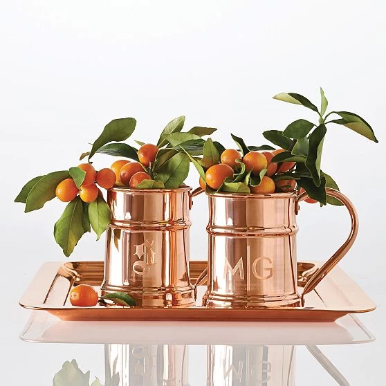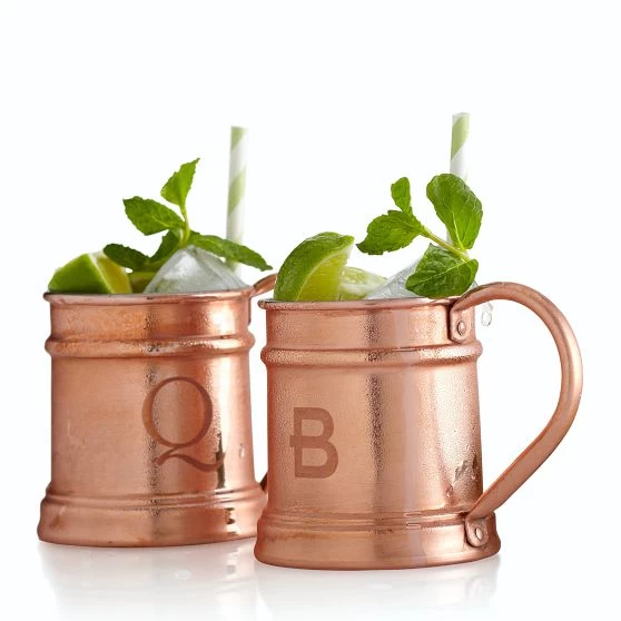 Serve up your favorite cocktails with these classic copper mugs. Perfect for mint juleps, whiskey sours and gin and tonics, these polished mugs are crafted by artisans in Turkey from solid copper with a tin lining and riveted handles. An elevated addition to any bar, these mugs will keep any beverage chilled and can be engraved with a monogram for an extra personal gift.
