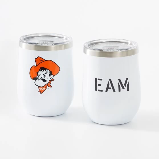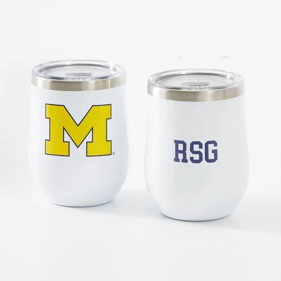 Meet our new Corkcicle Collegiate Collection. Show your school spirit while you sip with this stemless wine cup by Corkcicle. Made from durable stainless steel that retains its temperature for hours, this convenient cup features a spill-resistant sliding lid. Perfect for tailgating with both hot and cold drinks. Add a custom monogram of your choice for an extra personalized touch on this go-to gift for the alumnus.