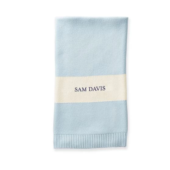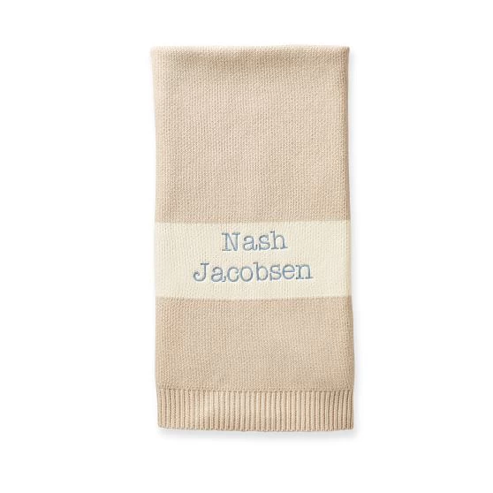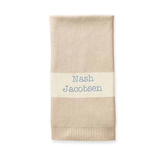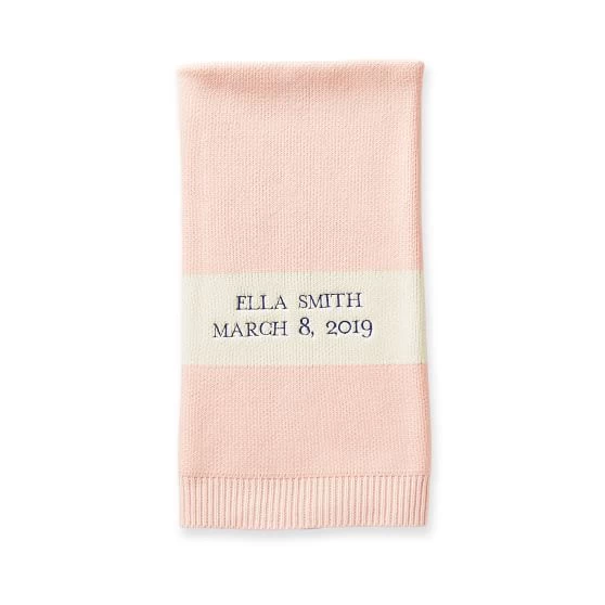 A sweet gift for the new arrival, this cozy baby blanket is woven from a cotton cashmere blend with rib knit edges. Sublimely soft and snuggly, this blanket will add a delicate touch of luxury to any nursery. Make it even more special with two lines of personalized embroidery that can include a name, date, special nickname or phrase.