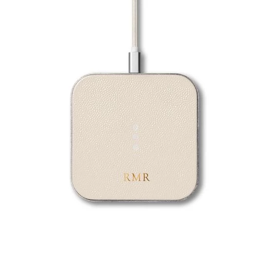 The perfect accessory for your home or office, this chic charging block offers wireless convenience to keep your phone fully charged all day long. Made from Italian leather with a weighted, non-slip bottom, the charger can be monogrammed with a name or initials for a thoughtful gift for the tech lover.