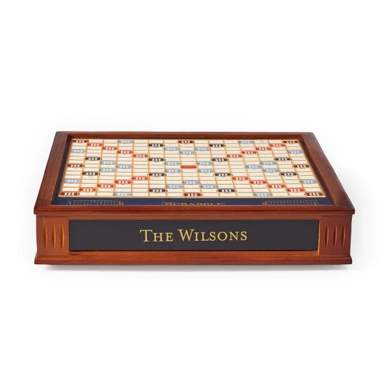 Elevate your gameplay to unprecedented elegance with this luxurious version of the classic word game Scrabble. Every detail has been carefully crafted for beauty and durability, resulting in a board game worthy of heirloom status. Add a name to the side of the set to make it one-of-a-kind.