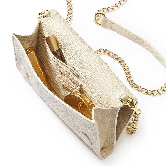 Effortless enough for everyday and elegant enough for special occasions, this exquisite crossbody can also be used as a clutch. Handcrafted from beautiful Italian leather, it has just enough room for your phone, a small wallet and a few going-out essentials. Features a double magnet closure and a chain strap with a leather section that rests comfortably on your shoulder, or can be removed entirely to use the bag as a sleek clutch. Add a classic monogram for a sophisticated personal touch.