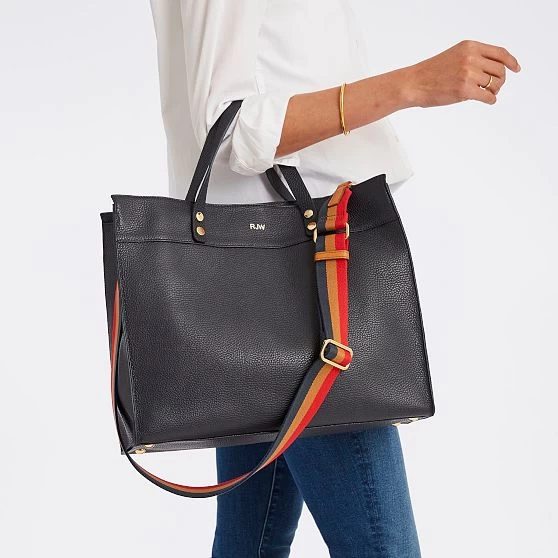 Crafted from high quality leather, our Essential Leather Tote features a spacious, open-tote design with leather carry handles and an adjustable, leather crossbody strap that can be swapped out for one of our colorful straps to create your own style. Add a foil debossed monogram to add a personal touch to your new everyday tote.