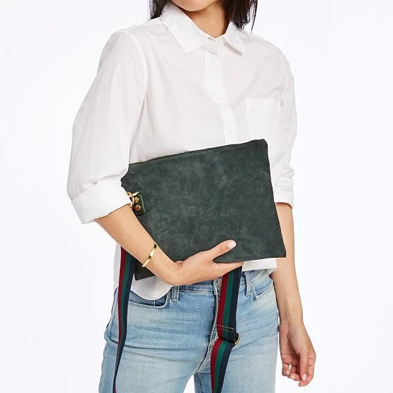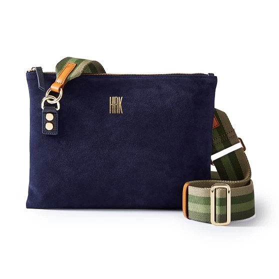 Crafted from beautiful high quality suede, this slim crossbody features a zipper closure, soft linen lining and an interior pocket for your small essentials. Designed with a matching leather crossbody strap that can be swapped out for one of our colorful straps to create your own hands-free style. Add a foil debossed monogram for a personal touch.