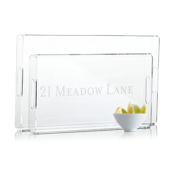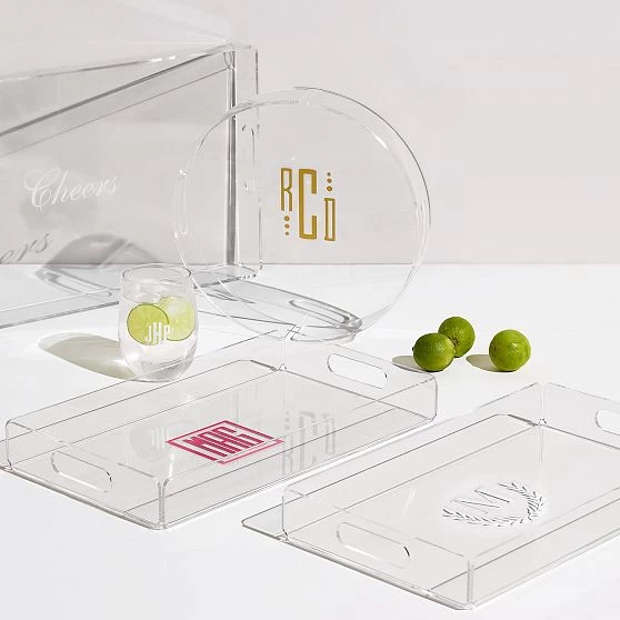 Your tray, your way. This stylish tray can be customized with hundreds of color and monogram options, from family names to street addresses. Crafted from a single piece of acrylic with cutout handles for carrying, the sleek style pairs with any decor whether you’re serving guests or displaying at home. Choose your style and give as a great gift to yourself or that special someone.