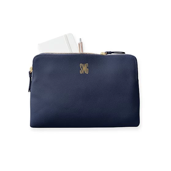 Add a little luxury to your everyday basics with the Everyday Italian Leather Collection. Handcrafted in Italy from beautiful pebbled leather, this classic zipper pouch is perfectly sized for holding your wallet, phone, keys and other daily essentials. With a double zipper closure and a small pocket inside, this versatile pouch can be carried alone as a clutch or used for a little extra tote organization. Add a foil debossed monogram for a personal touch.