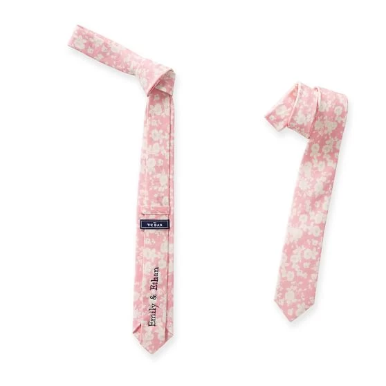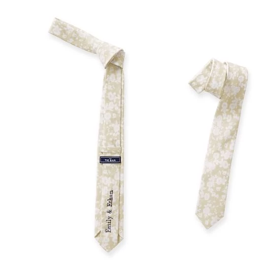 The perfect gift for your groomsmen or for any special occasion, our individual ties are available in your choice of colors and patterns. Made from a blend of silk and soft linen, these Floral Ties can be personalized with an embroidered name on the back for a thoughtful touch. Pair with our matching Floral Handkerchief for a complete look.