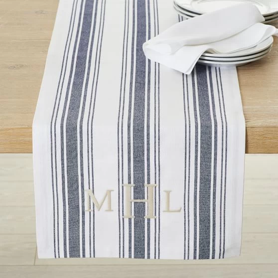 Set your table with this classic striped runner for an effortless look that will elevate dinner parties and everyday dining alike. Woven from yarn-dyed cotton for vibrant, long-lasting color, this beautiful runner is designed to fit both 6 and 8 feet tables. Layer with our French Stripe Placemats for a coordinated look or mix and match with our other table linens for a more eclectic tablescape. Have family initials embroidered onto the runner for an easy gift any entertainer will love.
