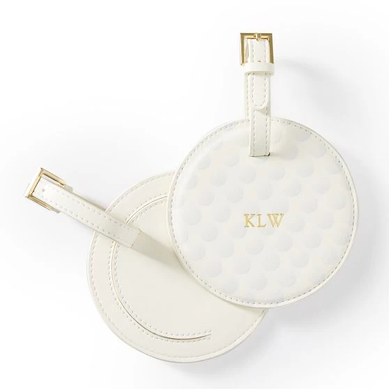 Represent your favorite sport wherever your go with this ball-themed luggage tag. Hang it on your sports bag or your suitcase so your luggage stands out in a crowd. Made from vegan leather with a card for your contact information under a clear plastic window slip. Add your monogram for a custom touch.