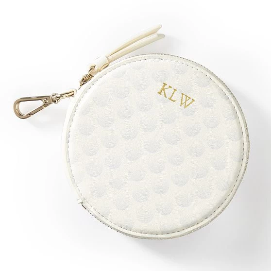 Score major style points with this ball-themed zipper pouch. Made from vegan leather with a matching zipper pull, use it to keep track of small essentials like keys and earbuds, or to stash your jewelry when you are working up a sweat. Makes a winning gift for any sports star or superfan in your life. Add a monogram for an extra special touch.