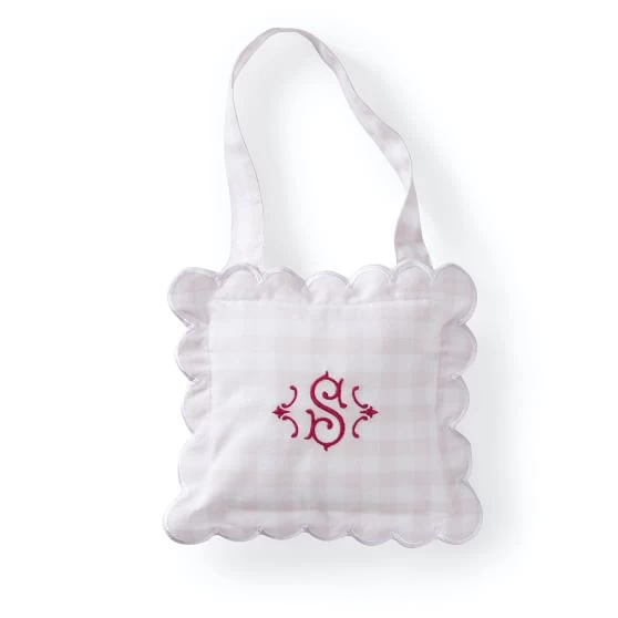 A sweet gift to add a personal touch to their nursery, this beautiful hanging door pillow is woven from a soft cotton blend with a classic gingham print, scalloped border and beautifully embroidered customization. Have their name, birth date or a special message added to the pillow for an extra special touch to this thoughtful gift for the new baby.