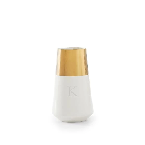 With a unique tapered shape and a gold dipped accent, our new vases are designed to look beautiful in every room. Engrave a monogram into to the glazed porcelain and add their favorite flowers for a thoughtful gift they’ll adore.