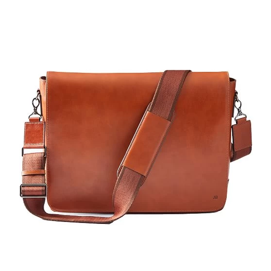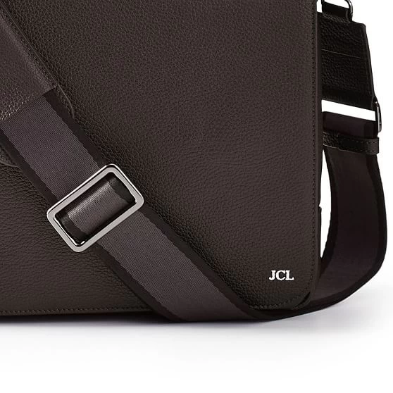 Impeccably crafted from high quality leather, the Graham Leather Collection is filled with classic styles for work and travel. This classic messenger style briefcase features a magnetic snap that opens to reveal a spacious interior with a 14” padded laptop sleeve and plenty of pockets to organize workday essentials. Perfect for commuting, the briefcase has an easy to carry shoulder strap that can be adjusted to the perfect height. Add a classic foil monogram or opt for blind debossing where your initials are pressed deeply into the leather, adding texture without color.