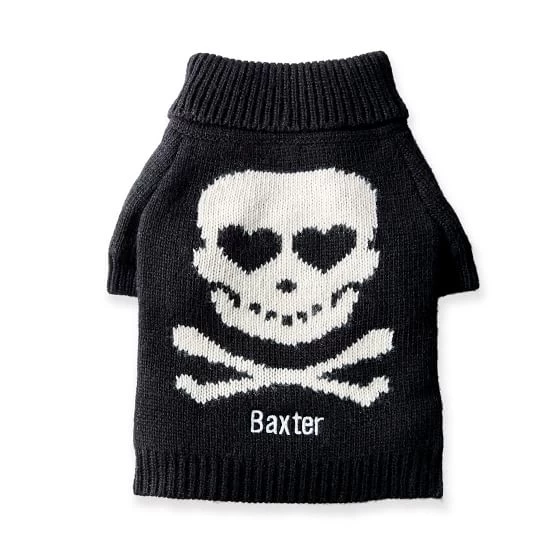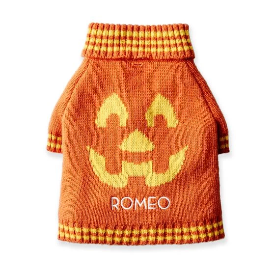 Cozy fall sweaters made for Spooktacular pups. These super soft sweaters are available in extra small to large sizes and feature a small opening in the back so you can easily access your dog’s collar when you are headed out for a walk. Have your pup’s name embroidered on the sweater for a personal touch.