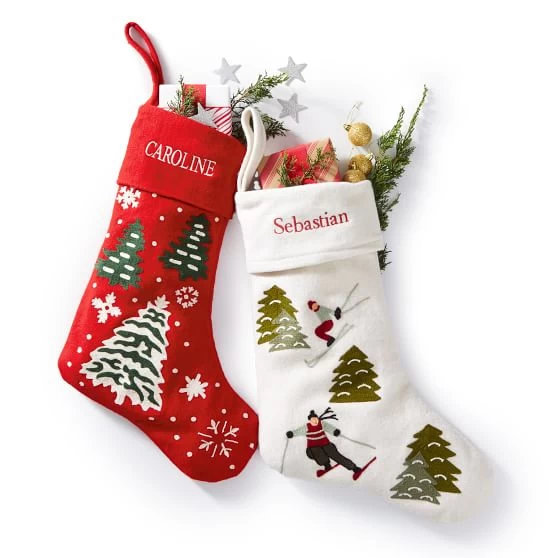 Featuring festive designs by Vermont-based artist, Laura Megroz, these embroidered wool stockings will brighten your mantel with wintry charm. Embroider with your child’s or someone special’s name and enjoy these classic stockings year after year.