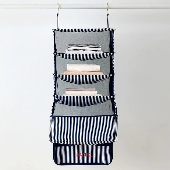 Take the convenience of a closet wherever you travel with our Hanging Expandable Packing Cube. Use it in your luggage by filling each slot and zipping it closed. Then, upon arrival, simply unzip and expand into a hanging closet that displays everything tidily in four open shelves. You’ll never want to travel without it again. Add your monogram for a personal touch.