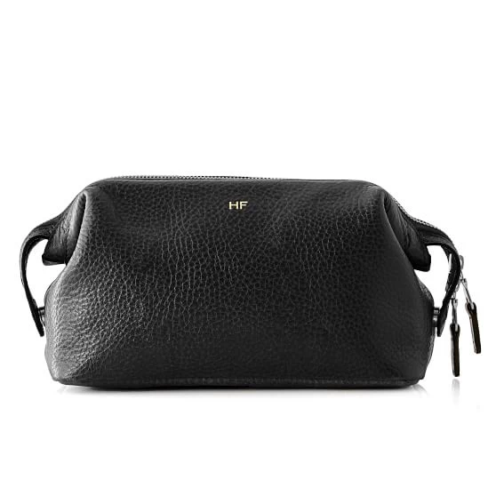 Luxe leather for the stylish traveler: keep all your daily essentials organized at home or away. This structured, angular zippered leather pouch has a nylon lining and handy interior pocket. The Harvey Collection pairs high-quality pebbled leather with timeless style and thoughtful design details.