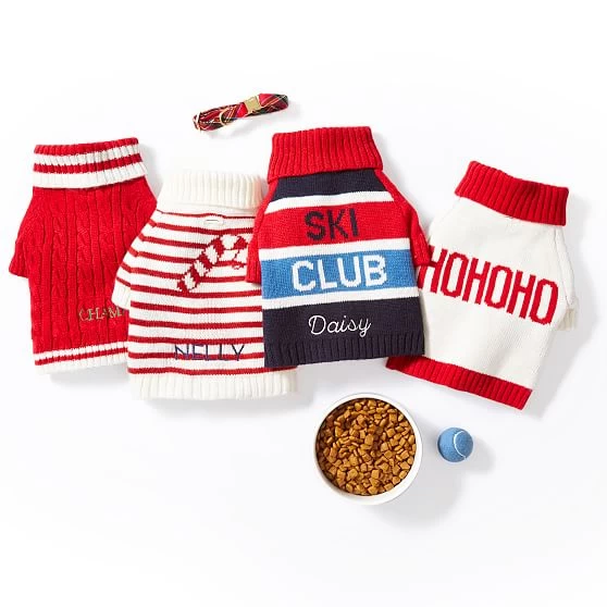 Up your pup’s Christmas sweater game with this festive essential. These super soft sweaters are available in extra small to large sizes and feature a small opening in the back so you can easily access your dog’s collar when you are headed out for a walk. Embroider with your pup’s name for an extra personal touch.