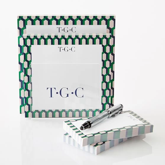 • Set includes four notepads and one acrylic holder.