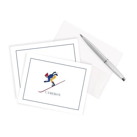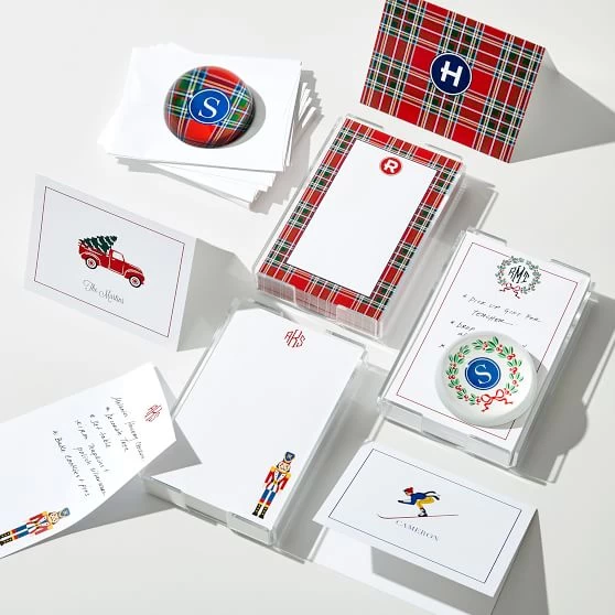 Create personalized messages of thanks or send your holiday wishes with these colorful folding note cards. With a rainbow of hues to choose from, your monogram will be created on this high-quality paper with plenty of space to write a personal message on the inside. The set of 25 notecards comes with plain white postal-ready envelopes.