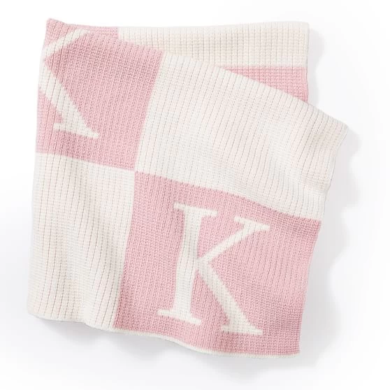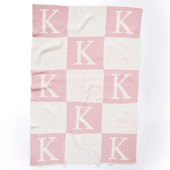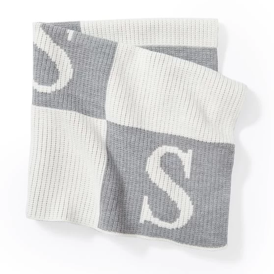 • Monogramming is knit into the blanket.