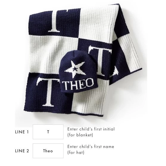 A cuddly gift bundle for newborn baby. This blanket and hat set are individually personalized to make a special one-of-a-kind gift. Made from super-soft acrylic, this perfect pairing will keep baby warm all season long.