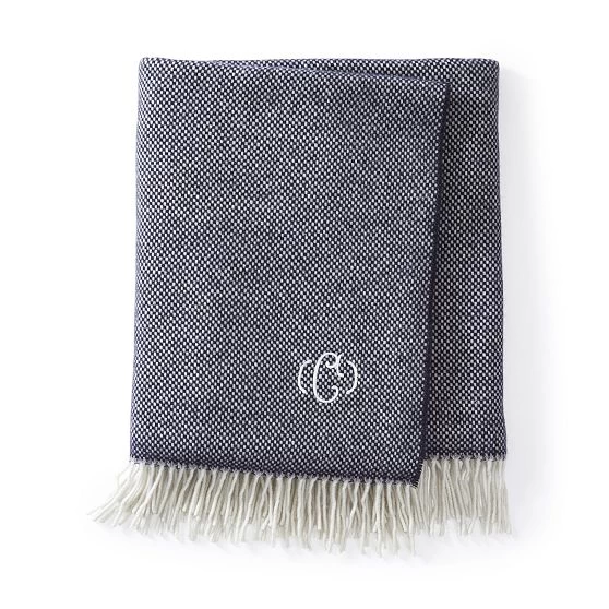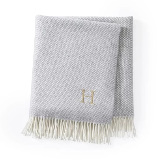 Woven from a luxurious, Italian lambswool cashmere blend, this beautifully soft throw features long fringe detailing and a subtly waffled texture. Perfect for throwing over a sofa, chair or bed, this luxe blanket can be embroidered with a monogram for a personal touch.