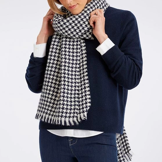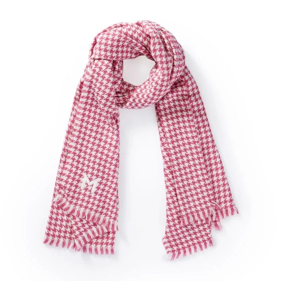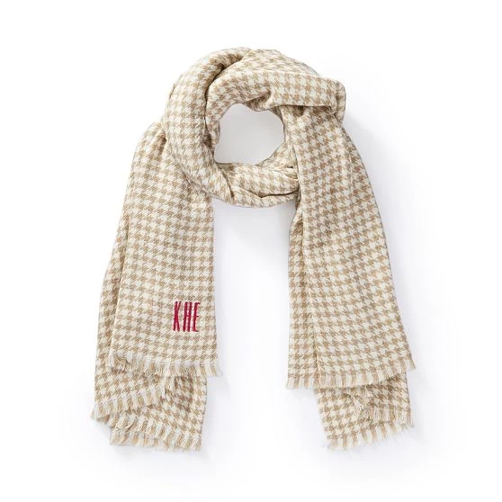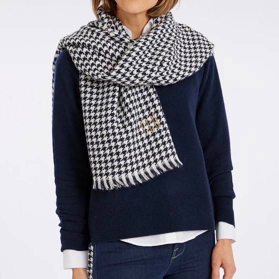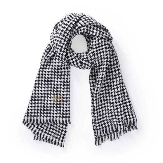 Made in Italy from a supersoft blend, the versatility and sophisticated houndstooth pattern of this luxurious scarf is sure to make it a wardrobe staple. Finished with tasseled edges and oversized for maximum coziness, use it as a travel wrap on flights, as a blanket around the house or styled as a scarf or shawl. Make it your own by choosing from hundreds of beautiful monogramming options.