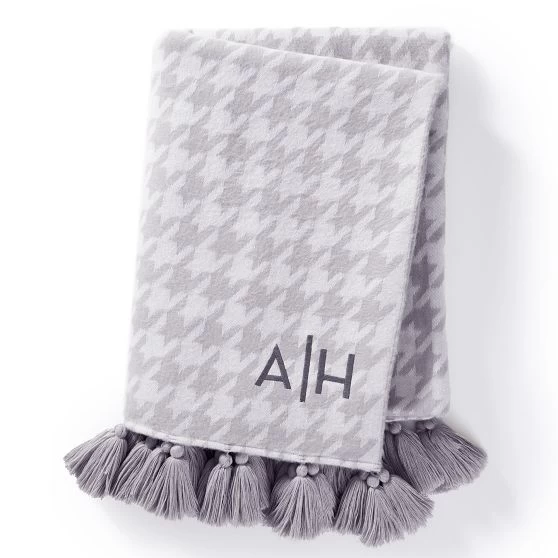 Made in Italy with an incredibly soft, rich texture and tasseled fringe, this classic throw blanket is the perfect antidote to chilly nights. Keep it on your couch or favorite chair for easy snuggling and a touch of color with the stylish, oversized houndstooth pattern. A thoughtful gift for everyone on your list, add a beautifully embroidered monogram for a personal touch.