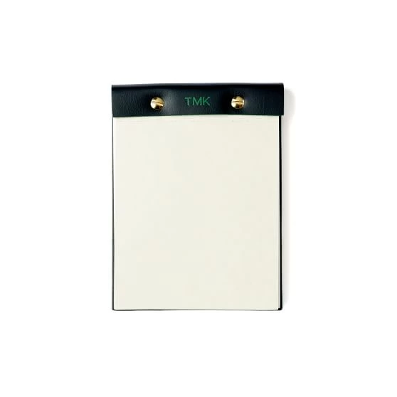 Upgrade your notebook for this beautiful Italian-made notepad. Designed to add instant polish to any desk, this 5/8” thick notepad features perforated pages with white acid-free paper and colorful painted edges. Add a foil debossed monogram for a thoughtful gift for your coworkers, the new grad – or yourself!