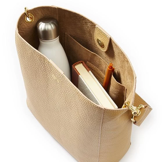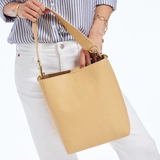 The definition of quiet luxury, this handbag is crafted in Italy out of supple pebbled leather in an easy open top silhouette. Features a removable leather shoulder strap and a smooth faux suede lining. The understated elegance and heirloom quality craftmanship of this bag are sure to make it a favorite for years to come. Add a monogram for a sophisticated personal touch.